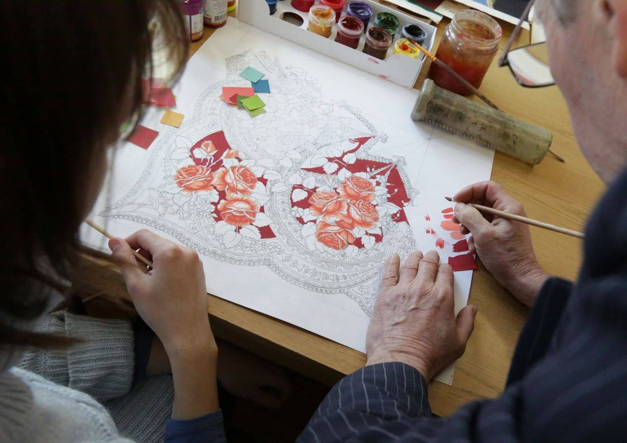 Художник изготавливает рисунок для платка в художественной мастерской ОАО «Павловопосадская платочная мануфактура». Фотография: А. Геодакян / ТАСС