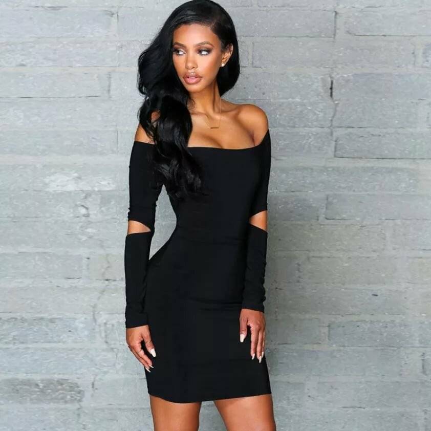 - Маленькое черное платье, длинное платье с разрезом, модель с американской проймой или одним рукавом, а также иными яркими и запоминающимися деталями;
