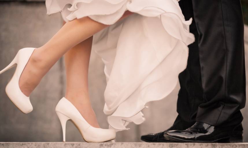 Считается, что этот оттенок зрительно добавляет пару сантиметров роста, делает женскую стопу более изящной и тонкой. Поэтому для невест с широкой ногой – это весьма подходящее решение. Более того, несмотря на свою нежность, цвет пудры – довольно универсальный и отлично сочетаемый вариант, такую свадебную обувь можно носить и в повседневной жизни.