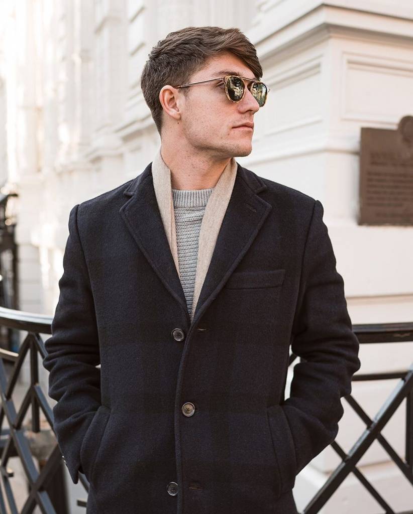 А вот для прогулки поверх пальто можно накинуть шарф. Но именно накинуть, не заморачиваясь с хитрыми узлами — пусть он расслабленно свисает, придавая тебе слегка небрежный вид.