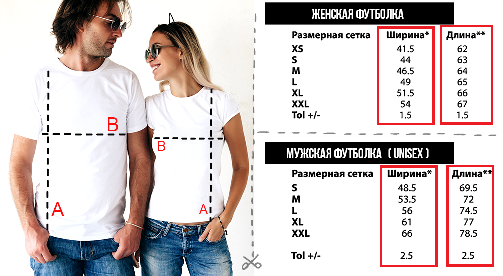Таблица размеров (мужских, женских, детских) футболок