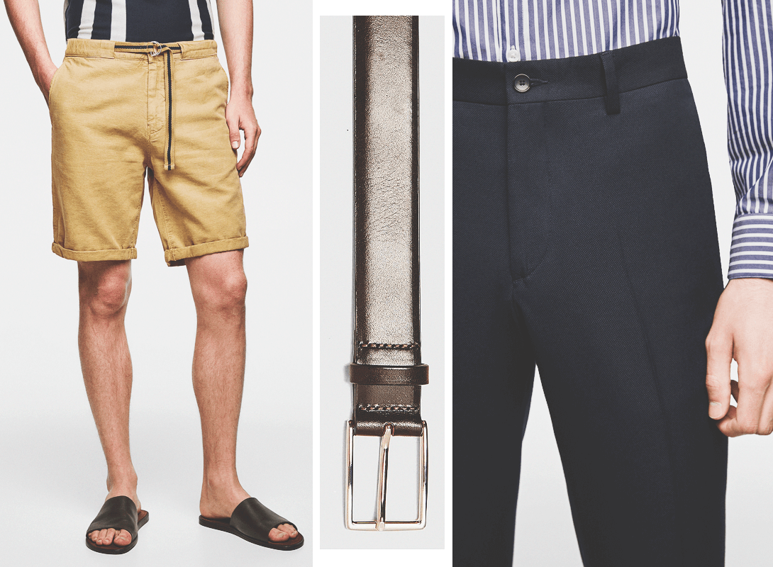 Шорты с ремнем не имеют такого жесткого правила, как джинсы. Но, опять же, если у шорт есть шлёвки, то они, скорее всего, предполагают наличие ремня. Здесь приветствуется более легкий стиль: ремень из ткани или холщовый. Кожа тоже допускается. А если ремень из нее еще и плетеный и яркого цвета, то он может стать отличным дополнением к летнему образу.