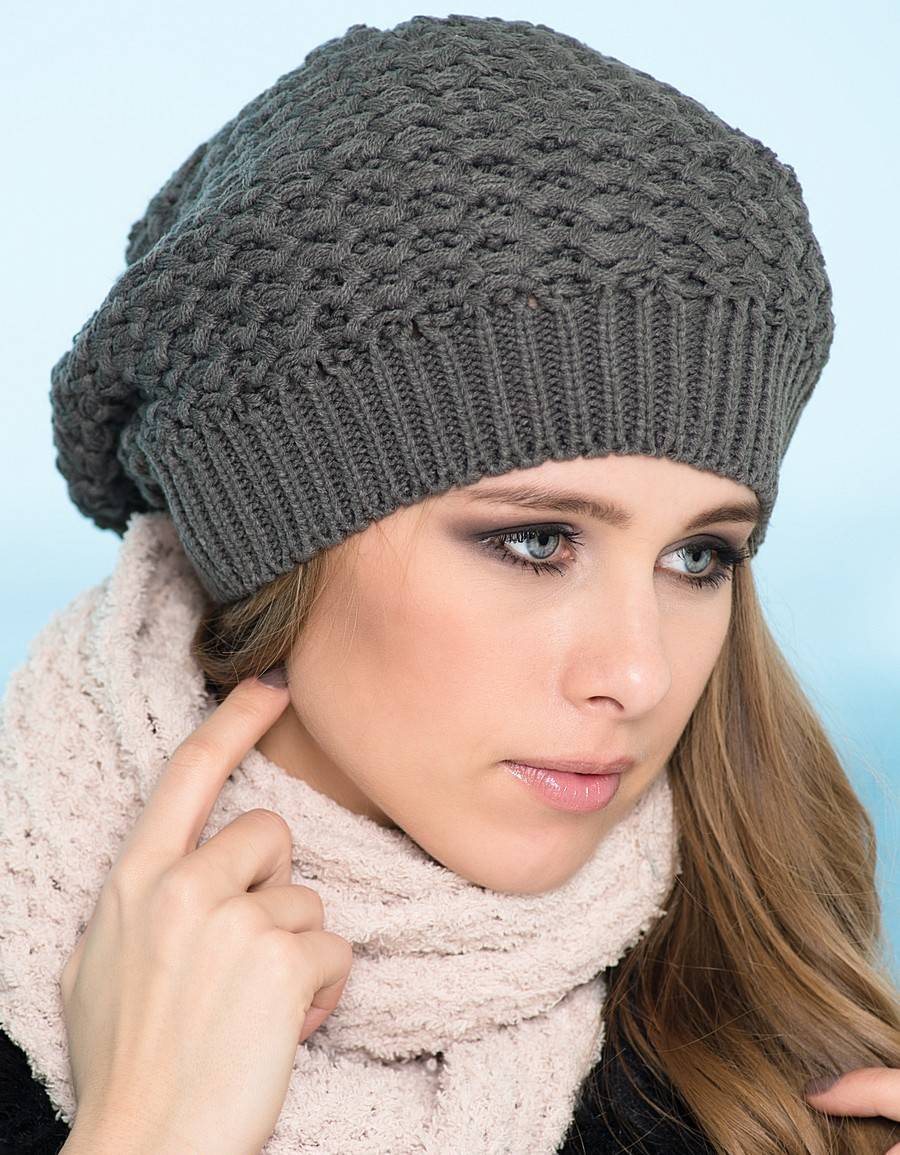 С верхней одеждой серого цвета гармонируют головные уборы серого цвета как светлых, так и тёмных оттенков, также можно приобрести шапку белого тона.