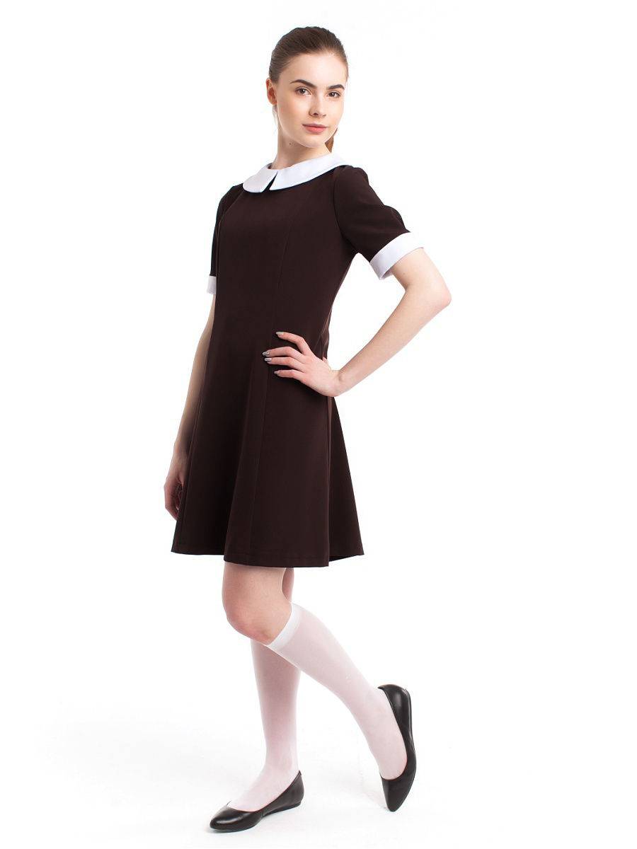 - Не нужно зацикливаться только на черном и коричневом цветах. Школьные платья могут быть коричневыми, дымчатыми, синими, бордовыми и темно-зелеными. Все перечисленные оттенки отлично сочетаются с белым.