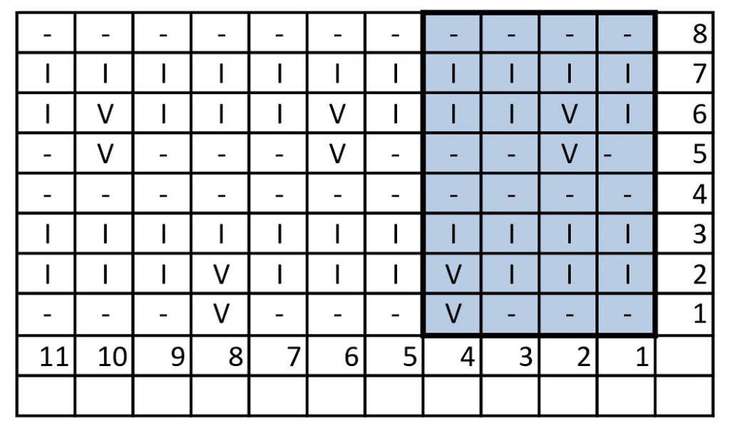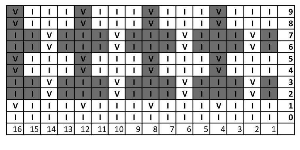 - 4-й ряд: вязать по рисунку ( изнаночные петли);
