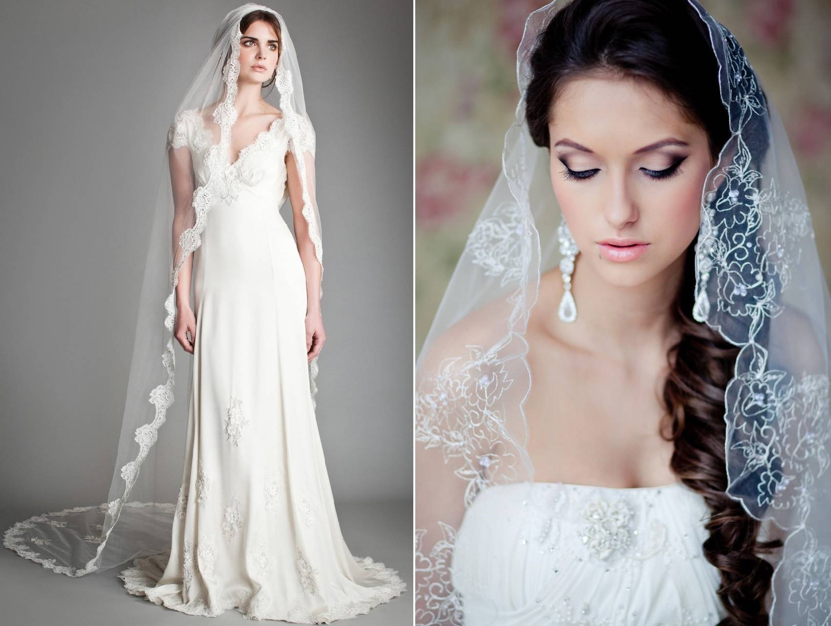 - Длинная фата, в зависимости от текстуры и кроя, будет дополнять любое платье в пол.