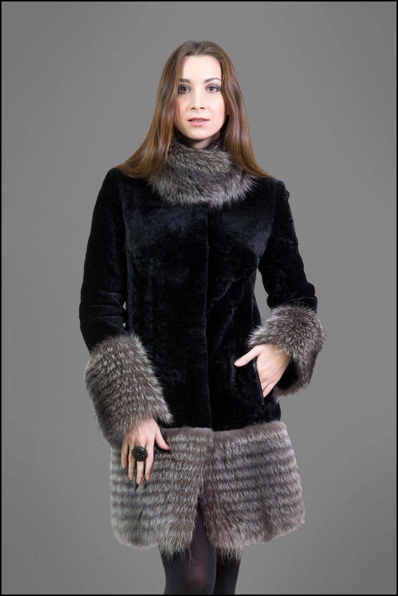 Крашеные и стриженые шубы из овчины украшают воротником и манжетами из чернобурки. Такое изделие отличается повышенной теплозащитой, хоть и уступает по красоте шубке из цельных лисьих шкурок.