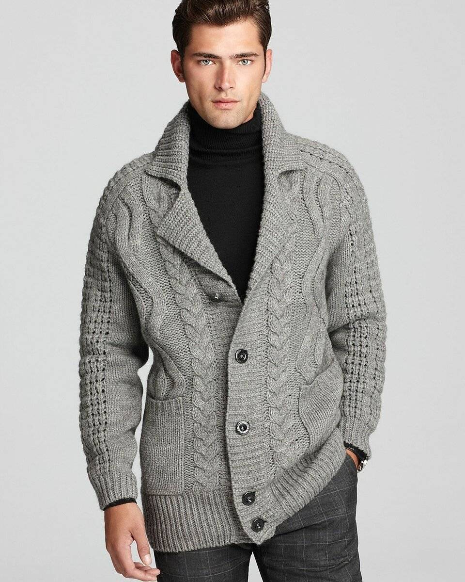Кардиганы – модные, популярные и очень удобные. Они сочетаются с разными элементами мужского гардероба, имеют карманы. Застежка на пуговицах и оригинальный ворот придают мужчине деловой вид, подчеркивают индивидуальность. Для межсезонья и зимы это не заменимые вещи.
