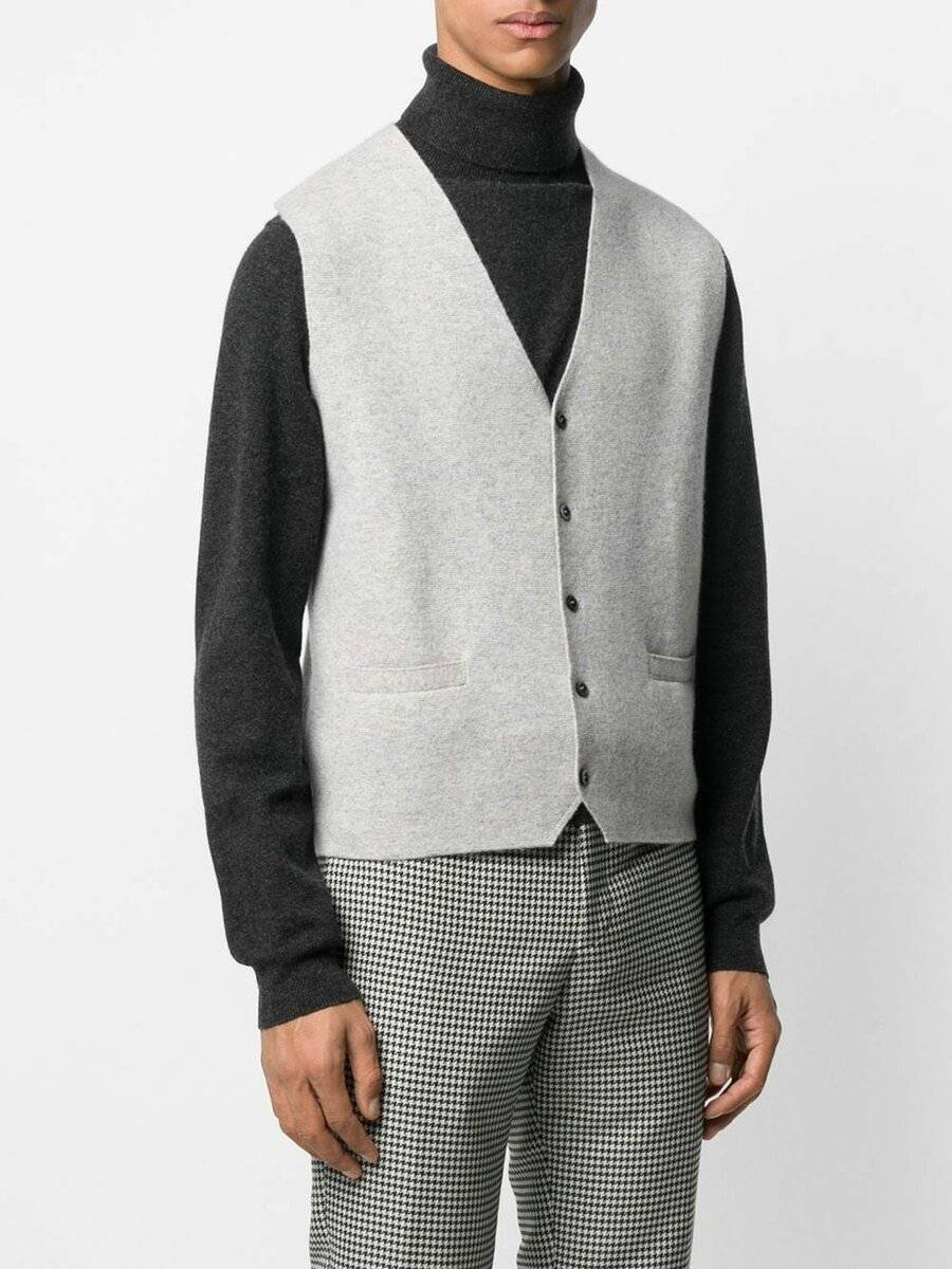 Безрукавки из шерсти отлично сочетаются с пиджаками и костюмами спортивного, современного стиля. Ее рекомендуют выбирать в контраст, он не должен сочетаться с остальными элементами гардероба.