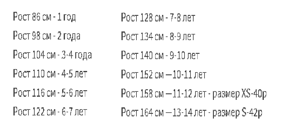 Соответствие детских размерных кодов и замеров кофты
