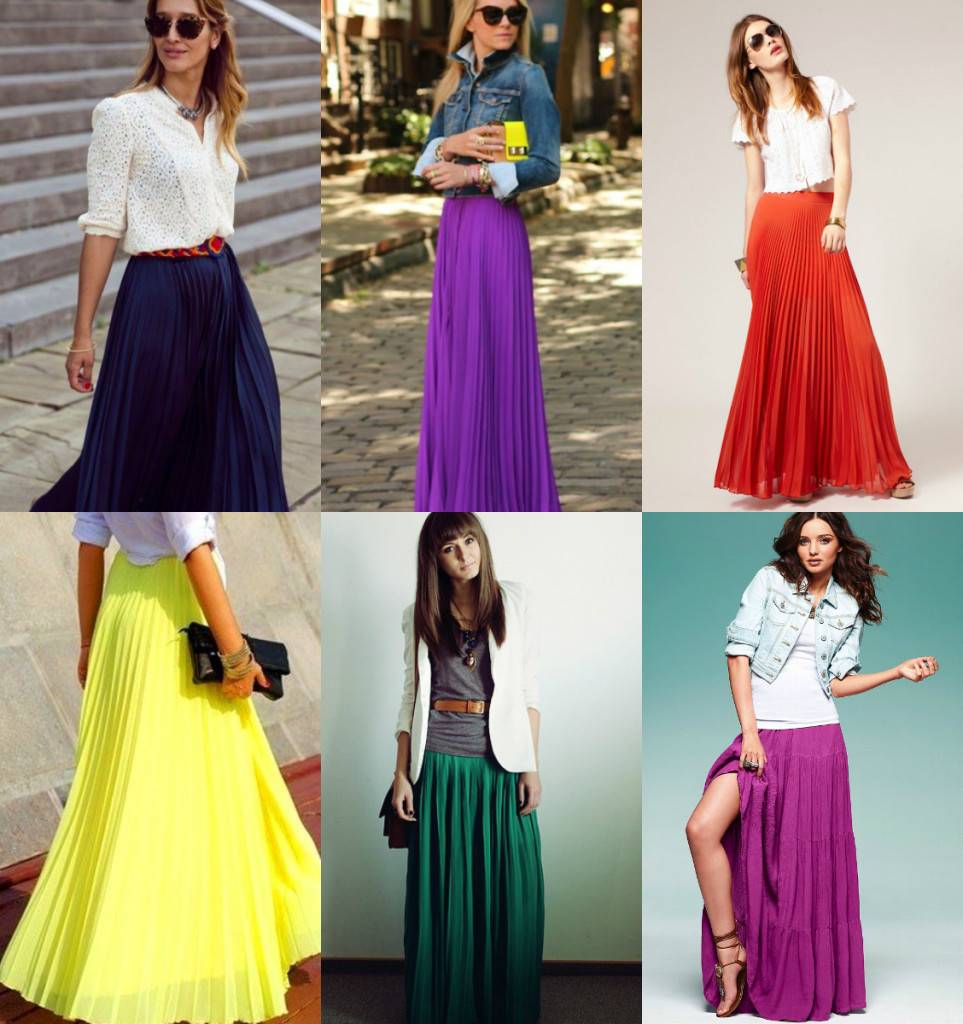 Удобнее всего длинную юбку носить летом. Одинаково хорошо смотрятся изделия из шелка, шифона, хлопка, цветные и однотонные, яркие и светлые, с плиссировкой и гладкие, с разрезами и без них. Однако все же советую выбирать юбку макси не только исходя из того, нравится она вам или нет. Если вы хотите получить максимально функциональный предмет гардероба, отдайте предпочтение изделию: