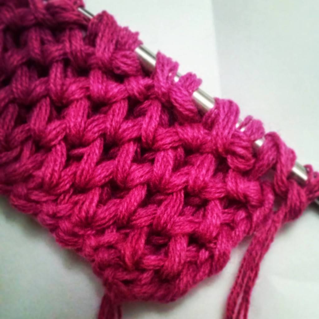 Потом с булавки снятые петли отправляются на нерабочую спицу – внимание! – без перекручивания и провязываются так же лицевыми. Так как у нас только две переплетающихся линии петель – это классическая «верёвочка»