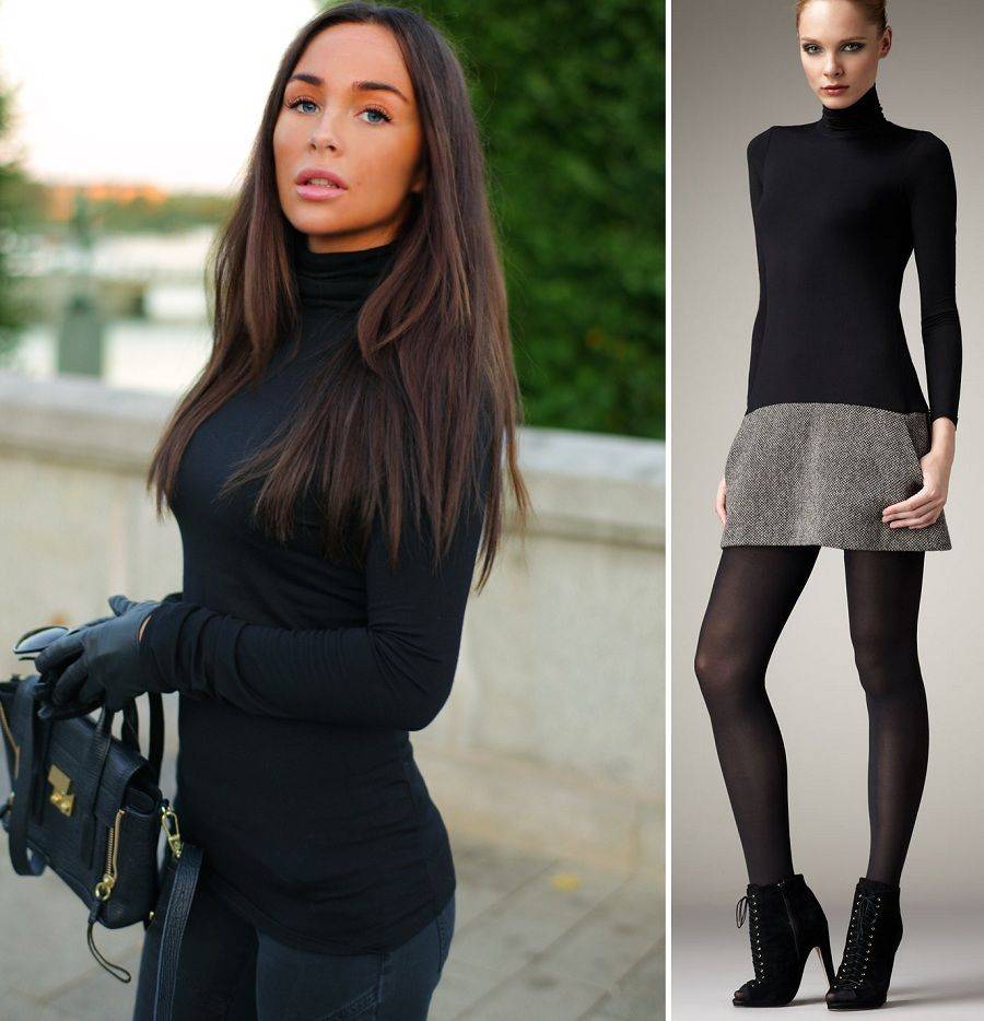 Эта фото-подборка наглядно показывает, как носить черную водолазку с платьем в 2021 году, чтобы выглядеть стильно.