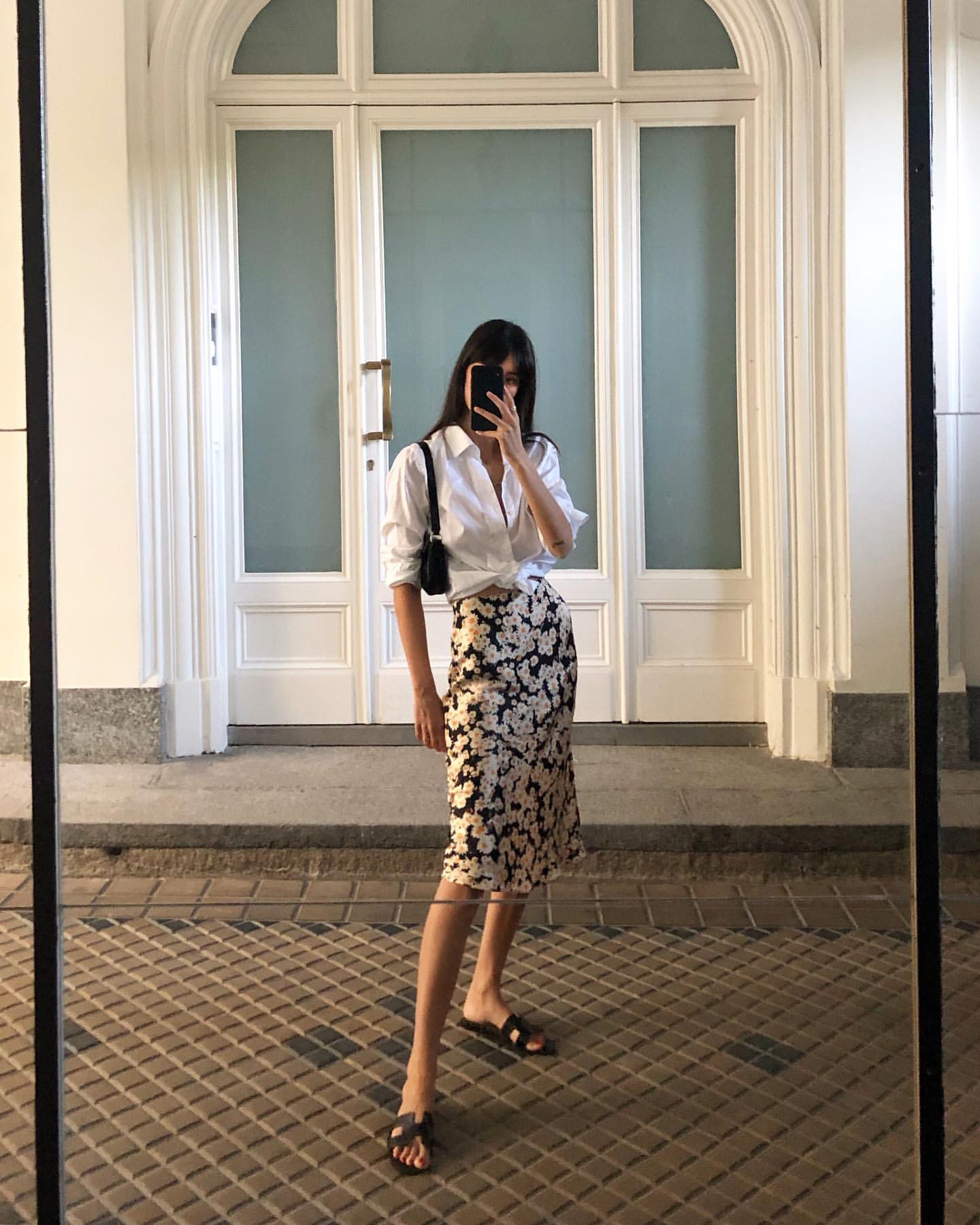 Несмотря на свою брутальность, простая рубашка мужского кроя очень даже дружит с юбками, и со структурными (вроде юбки-карандаша), и с женственными А-юбками.