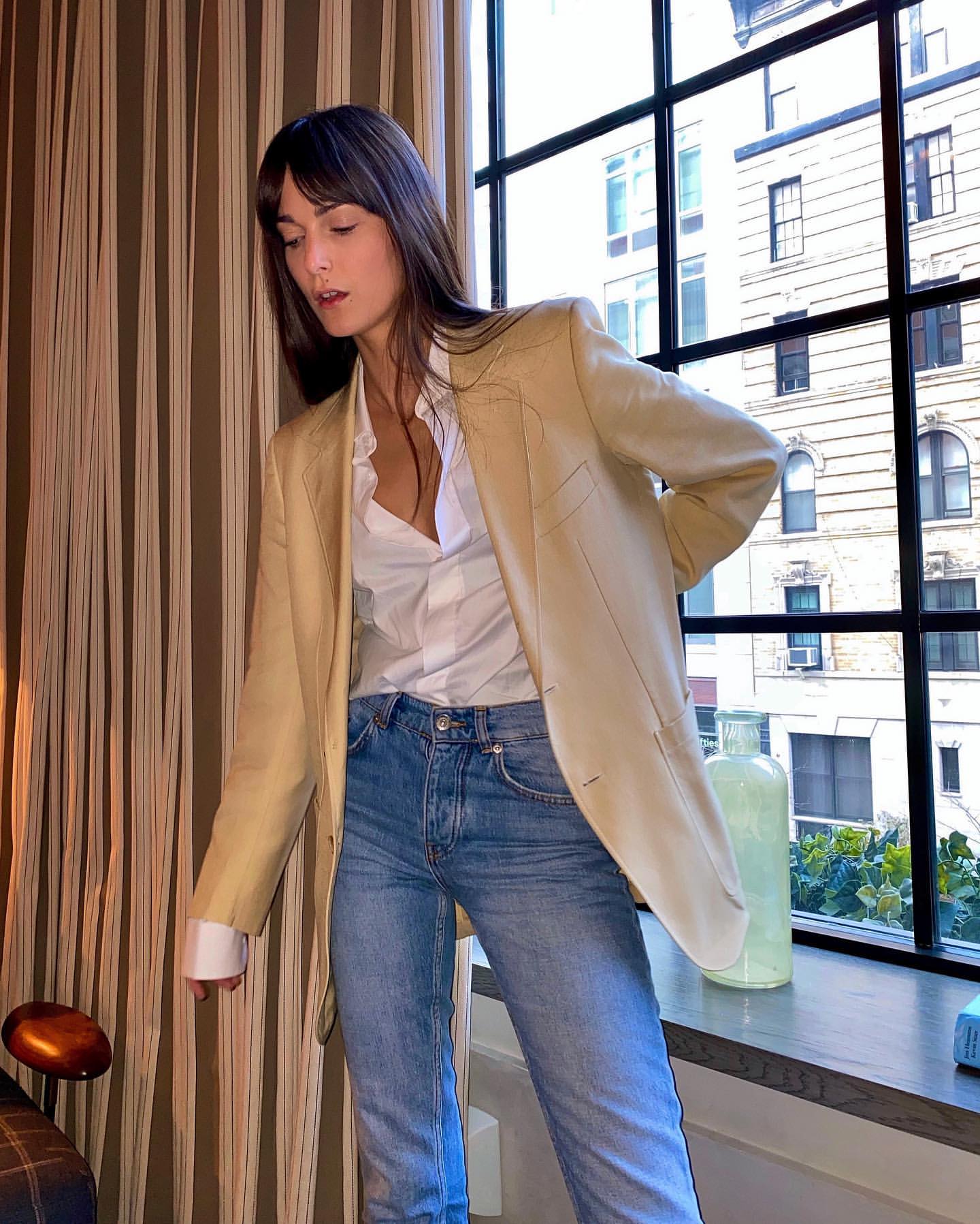 Ну и в паре с еще одним трендом 2020 — пиджаком мужского прямого кроя — рубашка бойфренда тоже отлично работает. Photo: Leia Sfez
