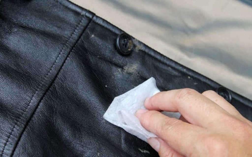 Свежие пятна на коже можно удалить с помощью пищевой соды или талька. Достаточно насыпать его на загрязнённую поверхность, оставить на ночь, а утром тщательно стряхнуть остатки средства.