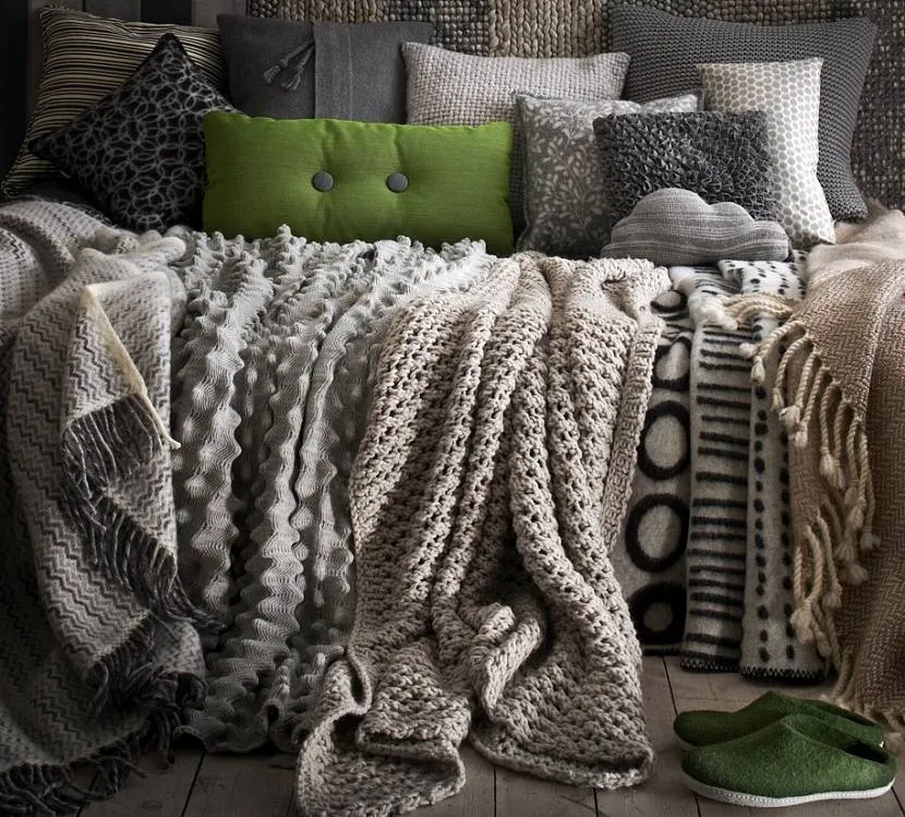 Покрывала изготавливают из самых разных материалов; вы всегда сможете подобрать вариант под нужный стиль и цветовую палитру. Популярны модели из велюра, микрофибры, вискозы, жаккарда, смесовых тканей на основе хлопка с добавкой полиэстера или вискозы. Менее распространены накидки из плюша, бархата или меха.