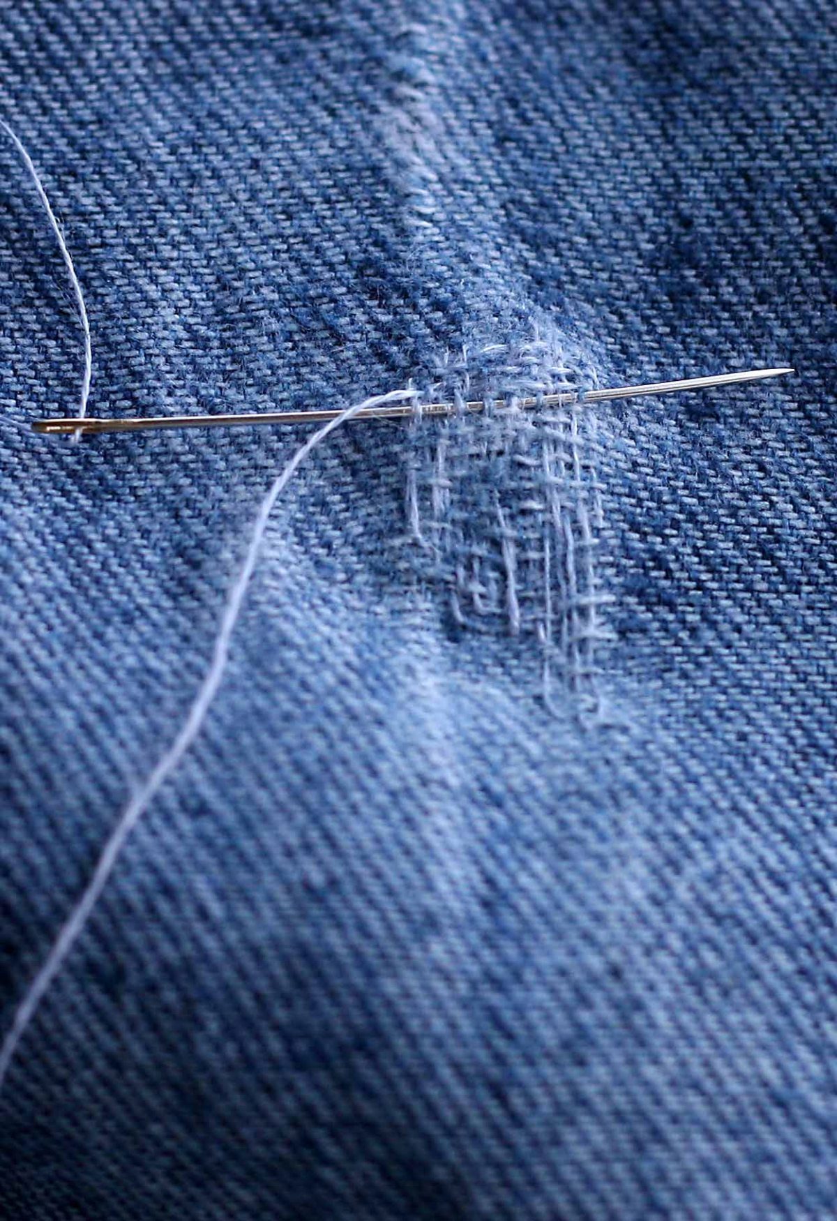 Если джинсы порваны или изношены, их можно сшить так, чтобы поврежденный участок ткани был полностью или едва заметен. Вам не нужно уметь пользоваться швейной машиной. Дефекты можно аккуратно и эффективно замазать вручную.