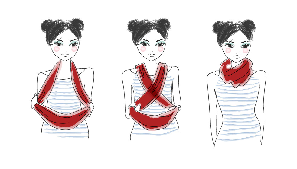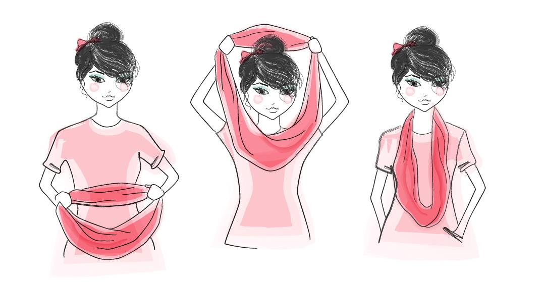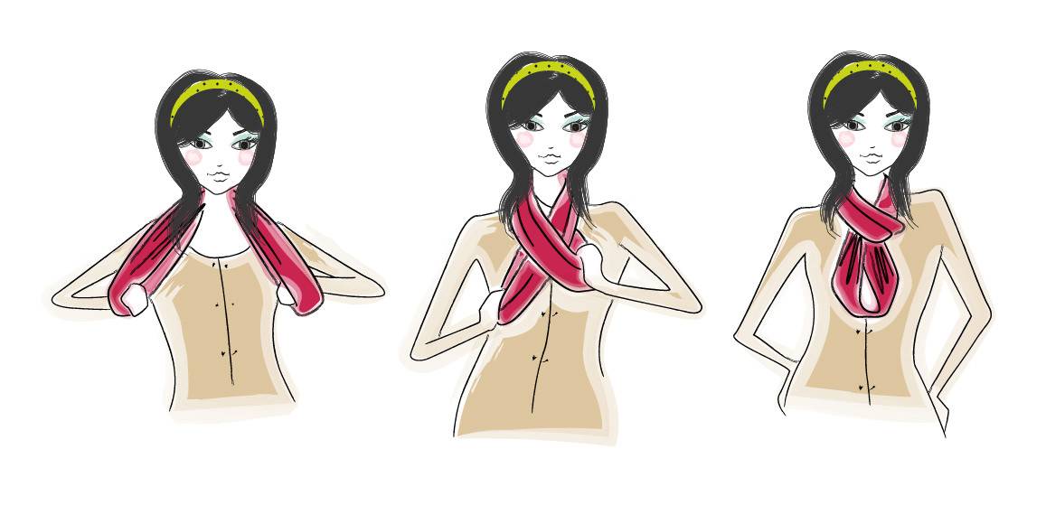 Для начала стоит освоить несколько вариантов завязывания шарфа: