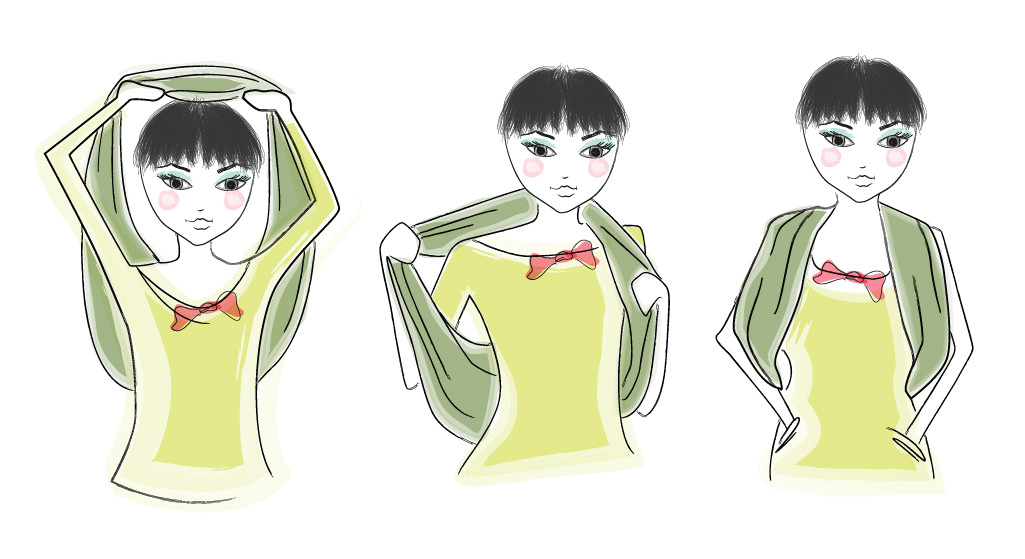 - его можно обмотать, при этом края должны оставаться свободно ниспадающими;