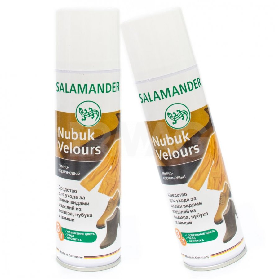 - Salamander. Чаще всего — это аэрозоли для нубука, других материалов. Обладает острым запахом, применять лучше на улице. Качественные товары, за приемлемые деньги!