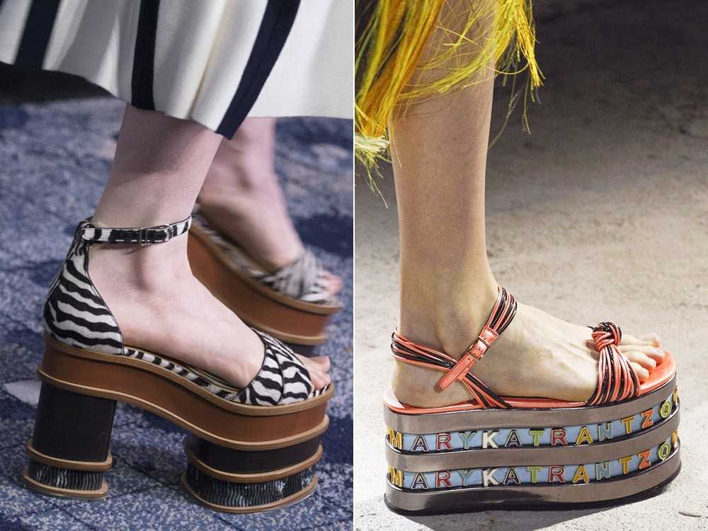 Высокая плоская платформа поднимает женщину на новый уровень восприятия обуви. В этом сезоне платформа очень актуальна.