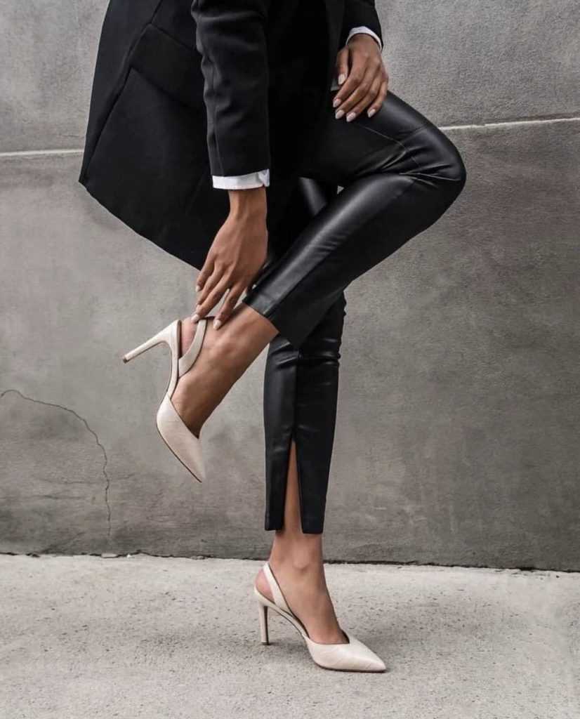 - Не стоит одевать чулки и колготы. Если того требует дресс-код — выбрать бесшовные капроны.