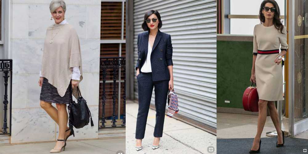 Основа делового стиля – платья и костюмы. При этом дамы с хорошей фигурой будут выглядеть очень элегантно в повседневном темном платье средней длины. Брюки лучше подобрать узкие, темных оттенков. В комплекте с удлиненным кардиганом они будут выглядеть невероятно стильно.