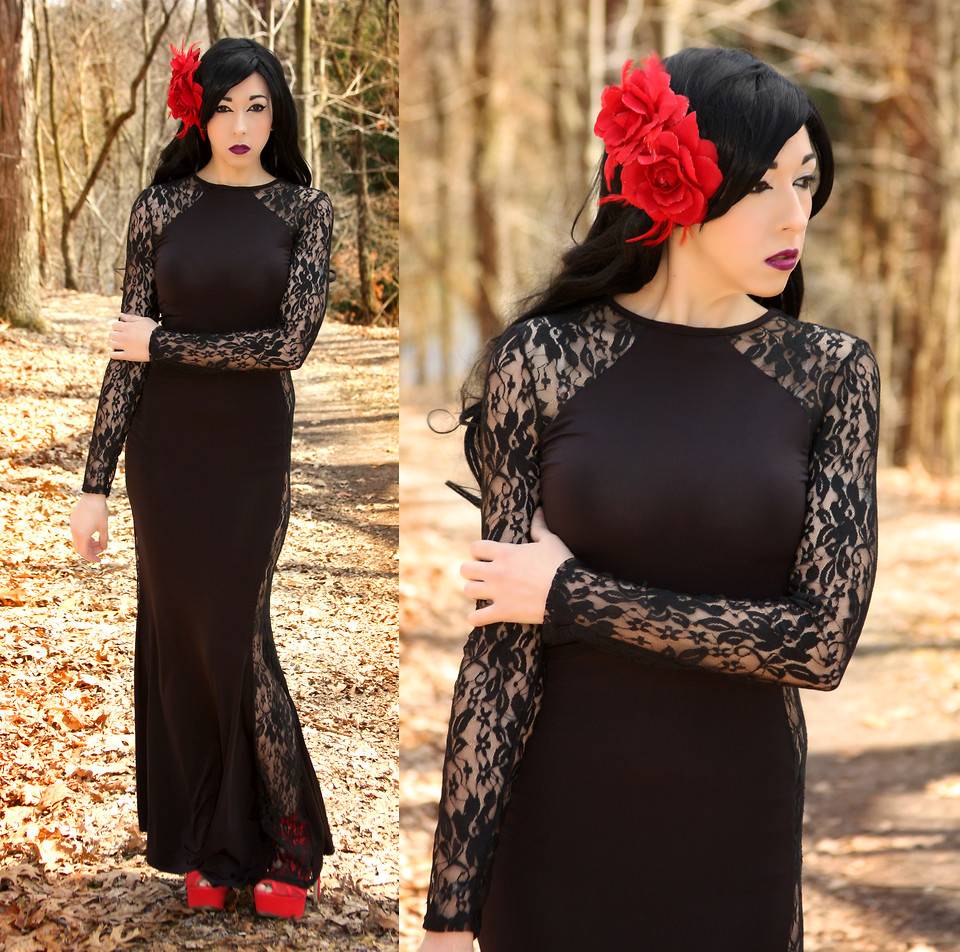 Для смелых актуальны полупрозрачные кружева в пол с нижней подкладкой до колена. Это идеально при изящной комплекции. Возможно декорирование атласным поясом, а также рукава до локтя или запястий.