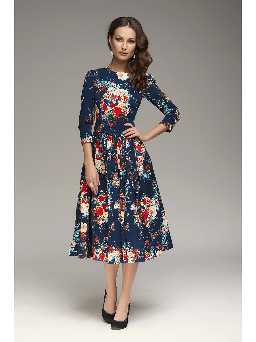 Синее платье, зеленые туфли? А почему бы и нет! Не большие аксессуары зеленого цвета, подчеркнут яркость Вашего образа. С однотонным синим платьем , прекрасно будут смотреться, туфли с цветочным принтом или абстракцией.