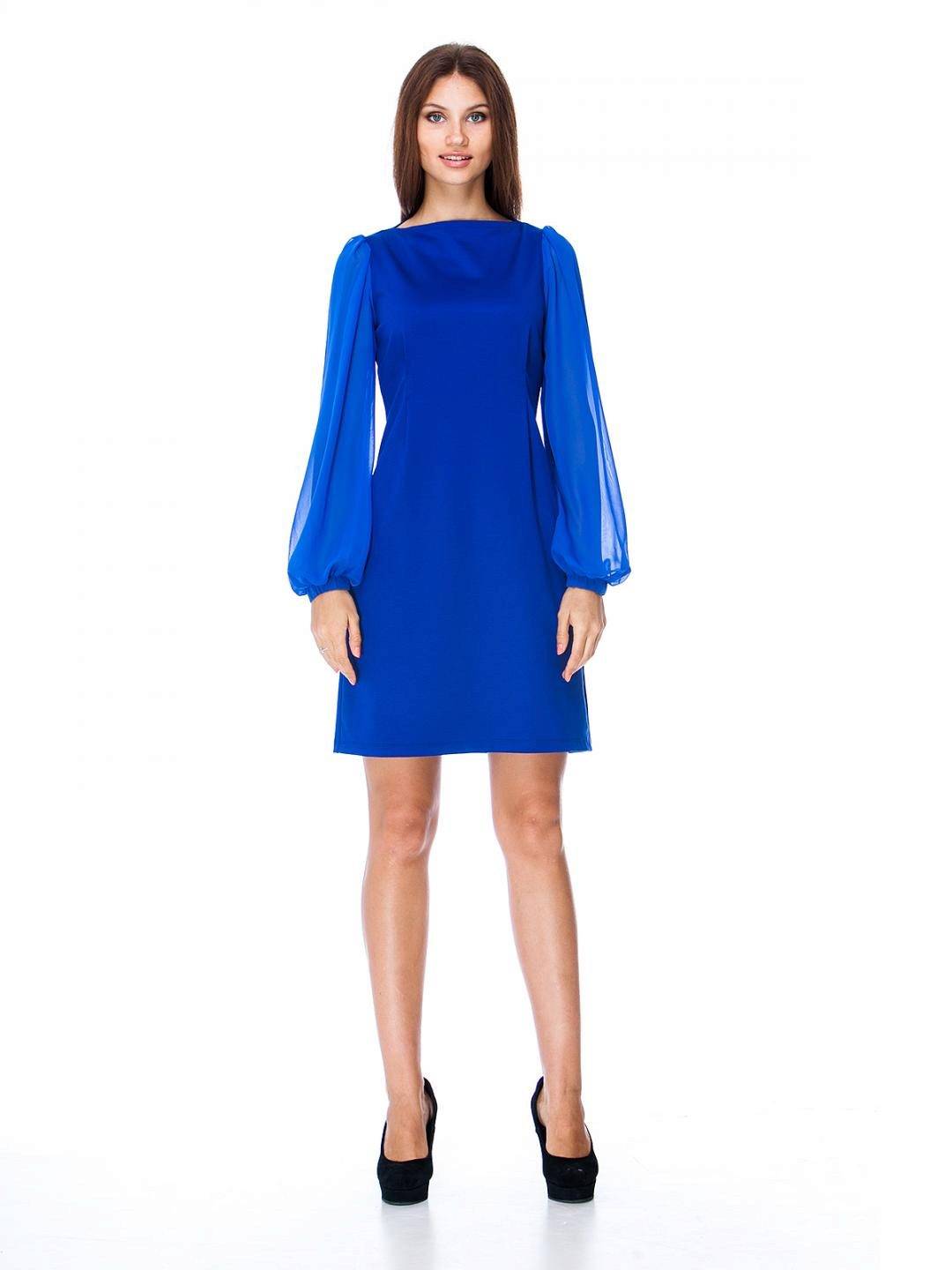 Платье любого оттенка синего сочетается с универсальными цветами: черным и коричневым. Такое соседство хорошо выглядит в офисе и на деловой встрече. Светло-коричневые аксессуары отлично смотрятся с оттенками индиго, сапфировым, ультрамарином, а темно-коричневые — с королевским синим, лазурным, небесным. Такой образ транслирует сосредоточенность и спокойствие.
