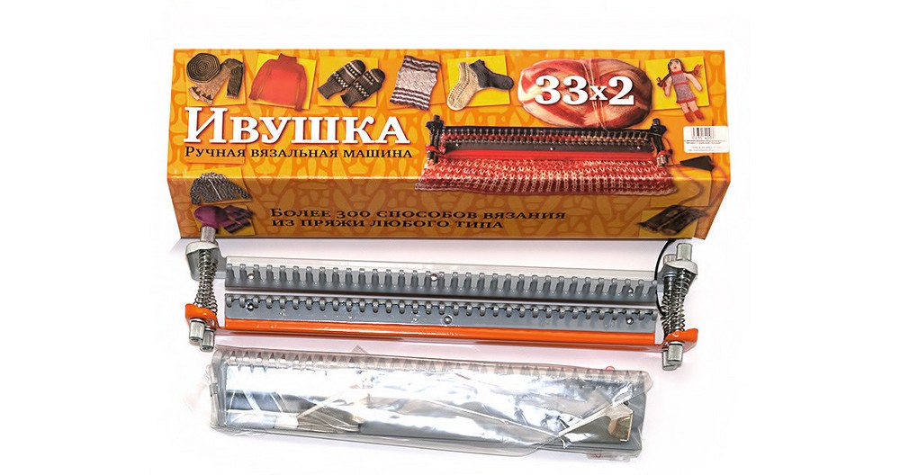 Популярная вязальная машинка от отечественного производителя, которая известна еще со времен СССР. Она занимает немного места и считается универсальной, поскольку на ней можно создавать различные изделия достаточно быстро. При желании можно взять такую машинку с собой в дорогу – она легкая (весит всего 1 кг) и компактная (длина около 30 сантиметров). Подключать к электричеству устройство не потребуется. Работать на ней можно с разной пряжей, нитка может быть разной толщины. Крючков у такой вязальной машины всего 66 – по 33 в каждом ряду. Этого достаточно для того, чтобы создавать различные интересные узоры, делать полотна разных форм. Два ряда, точнее планки, соединены между собой с помощью пружин и винтовых креплений. Хотите изменить длину петель и сделать полотно менее или более плотным? Сделать это просто: для этого нужно ослабить или посильнее закрутить винты. Для создания другого узора меняют положение крючков – их можно сдвинуть левее, правее или параллельно друг другу.