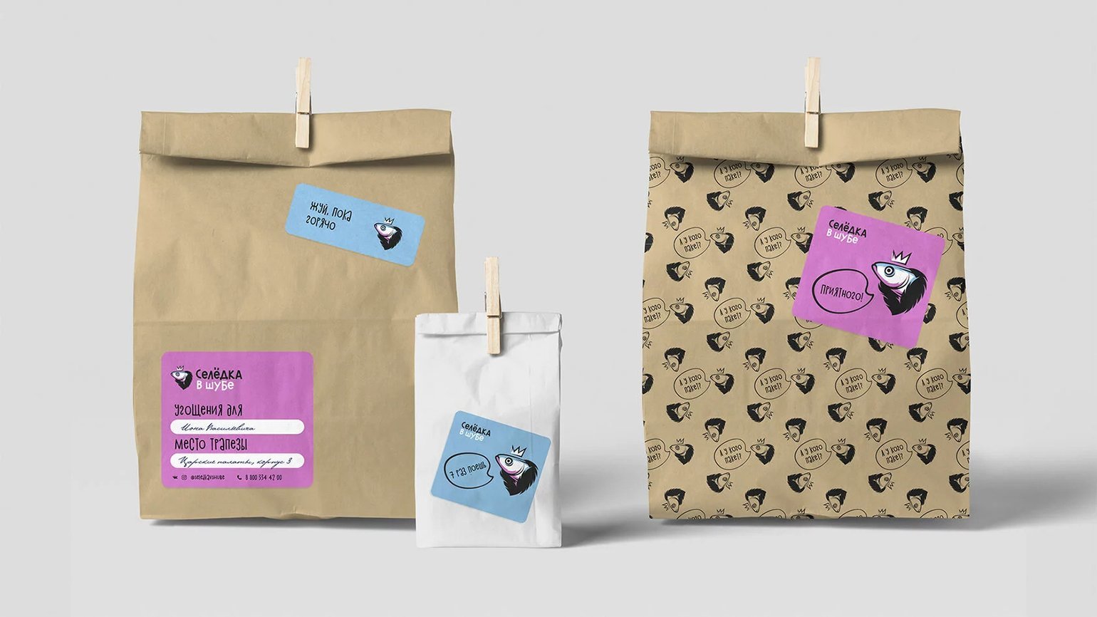 По замыслу дизайнеров, в айдентике для сети кулинарий «Селёдка в шубе» розовый — это цвет, в который красит другие продукты свёкла. А голубой может означать море и рыбу — или просто работать как хороший и привлекательный контрастИзображение: «Логомашина»
