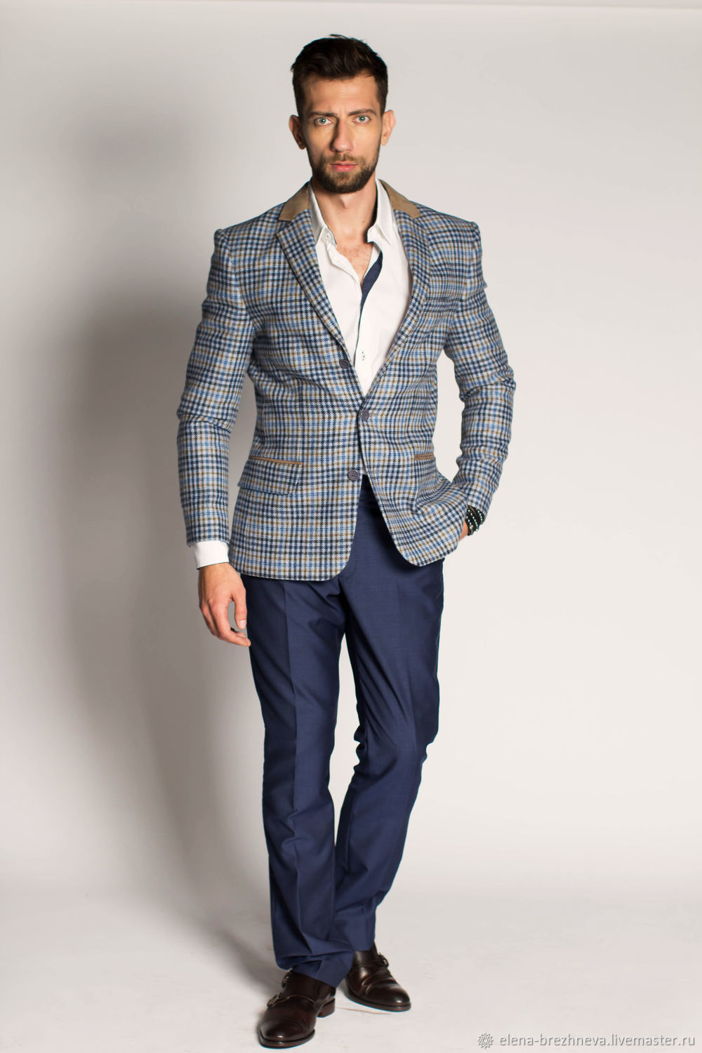 Блейзер можно носить с классическими брюками. Главное, чтобы они отличались по цвету. Также их носят с джинсами и брюками чинос.