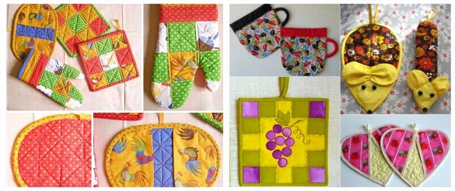 - модельные изделия для кухни выполнятся в технике печворк и представляют собой оригинальные украшения и практичные изделия для работы на кухне.