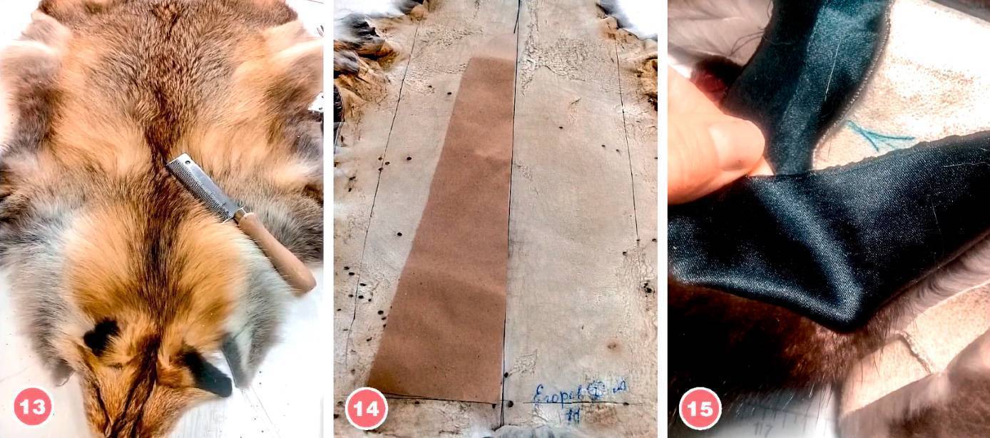 - Шкурку готовим к раскрою, отмечая все неудачные участки на мездре.