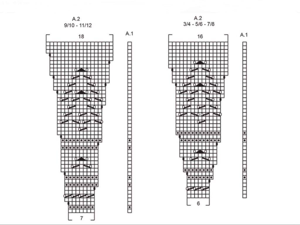 Количество петель в описании рассчитано на возраст 2 года. Узор для выпуклой вязки делается по такой схеме: нечётные ряды вывязываются изнаночными петлями; чётные вяжутся лицевыми. Жемчужный узор выполняется по схеме: