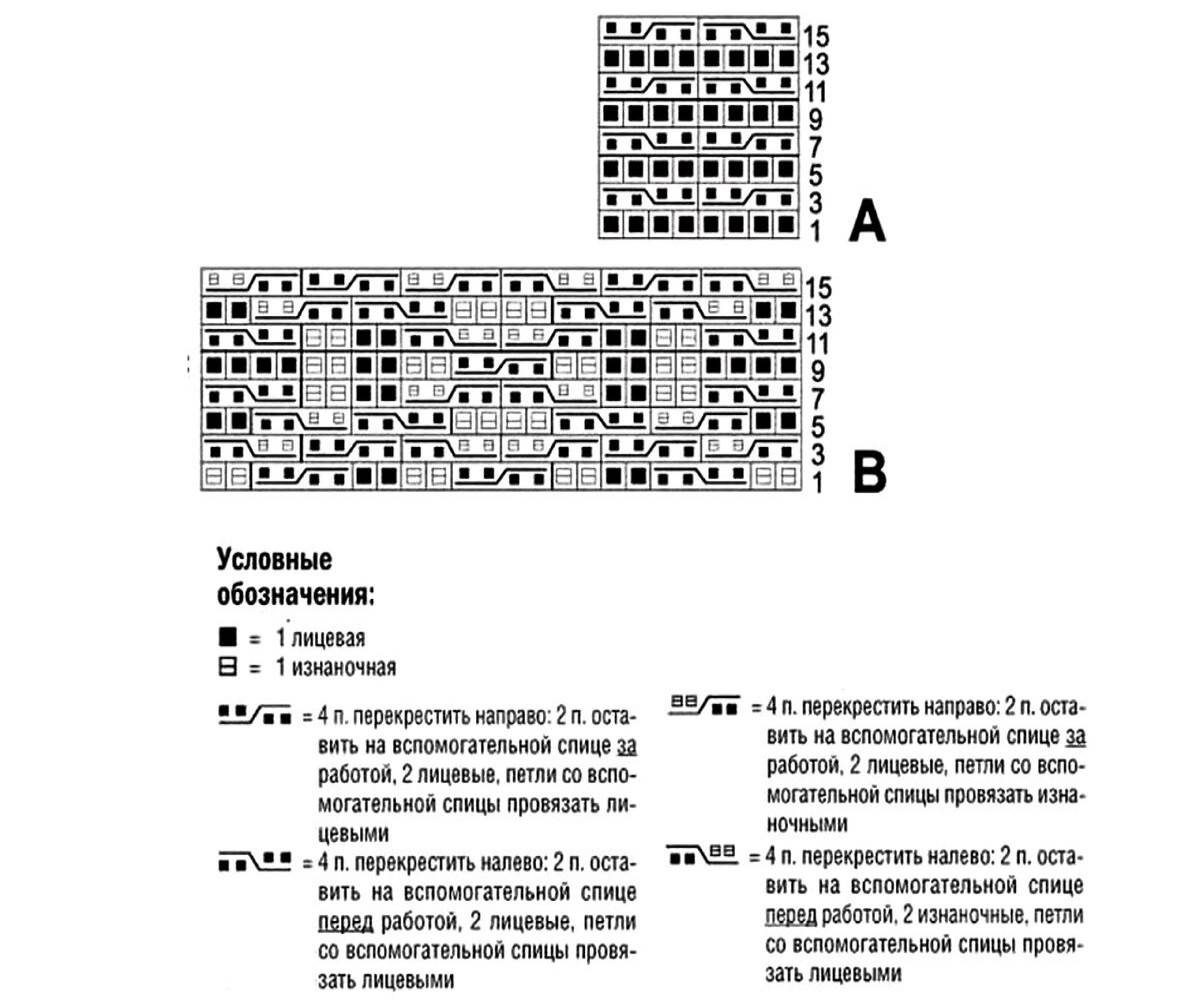 Первоначально разберемся с выполнением необычных кос. Для их исполнения набирается количество п, кратное 6. Вяжутся они по такой схеме.
