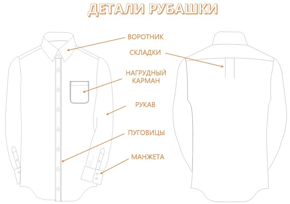 Для более глубокого понимания разновидностей мужской сорочки, необходимо рассмотреть в подробностях ключевые элементы. Основные детали: воротник, манжеты, рукава, карманы, лицевая и задняя стороны.