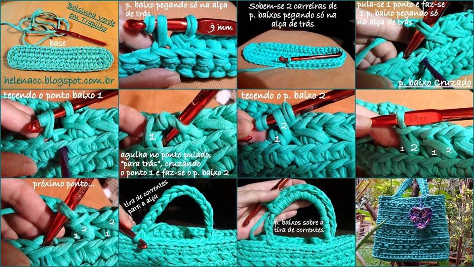 Вот мы создали трикотажную пряжу, а теперь стоит связать саму сумочку. Процесс вязания представлен в нижеуказанном фото мастер-классе.