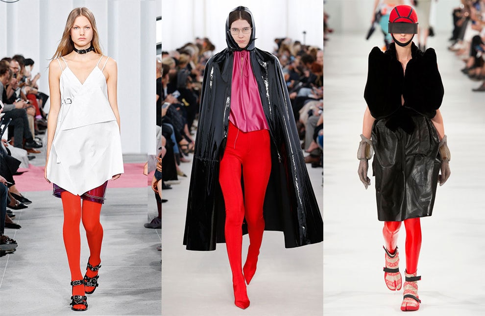 Уже 20 лет спустя красными колготками увлеклись все известные бренды. Дизайнеры Carven, Givenchy, Céline призывают комбинировать красные колготы с макси, мини и даже с ажурными платьями.