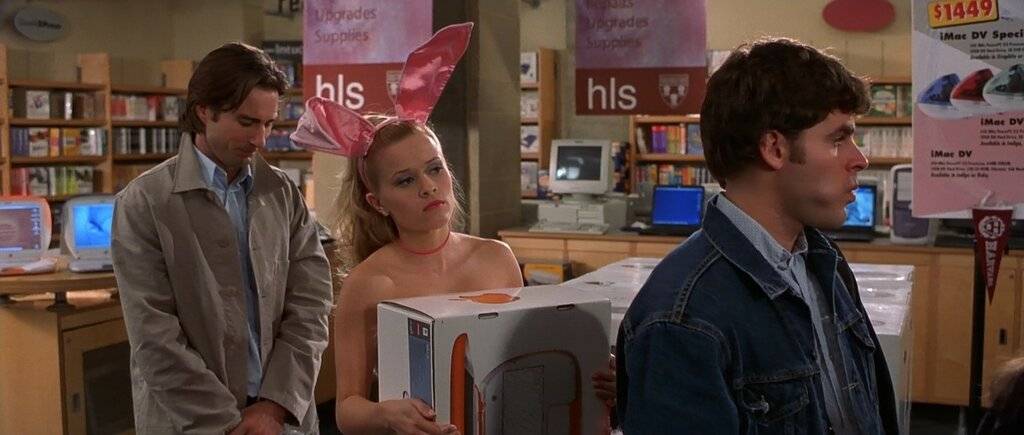Как и у Бриджет, у Эль вечеринка тоже не задалась, бросивший ее Уорнер (Мэттью Дэвис) говорит ей, что она недостаточно умна для Гарварда. Но если Бридж сразу впала в уныние, а точнее запой, то Эль сразу решила бороться и показать всем, на что способна, и не меняя костюма, отправилась покупать ноутбук, где и встретила Эммета (Люк Уилсон).