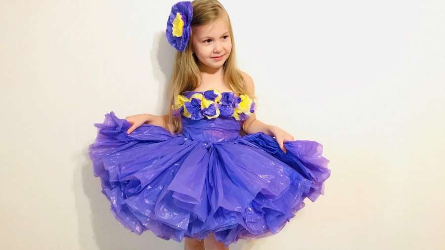 7 разных детских костюмов из мусора для девочки (разные наряды)