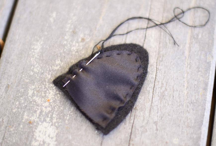 - По полученному эскизу вырежьте две детали из фетра черного цвета.