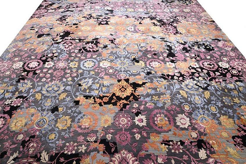 - Стертая классика – дизайнерская линейка с частично утраченным изображением в классическом венецианском или испанском стиле. Большинство ковров этой коллекции изготавливаются из шерсти и шелка, в некоторые модели добавляется вискоза и бамбуковый шелк.