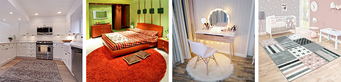 - Небольшие по размеру коврики, длинные дорожки, ковролин, паласы – все эти виды ковров используются для размещения в различных помещениях в зависимости от своего предназначения. Коврики используются в небольших комнатах, где не поместится стандартный ковер, дорожки занимают свое место в прихожих и длинных холлах, ковролин – в детских комнатах, паласы – в помещениях с большой проходимостью.