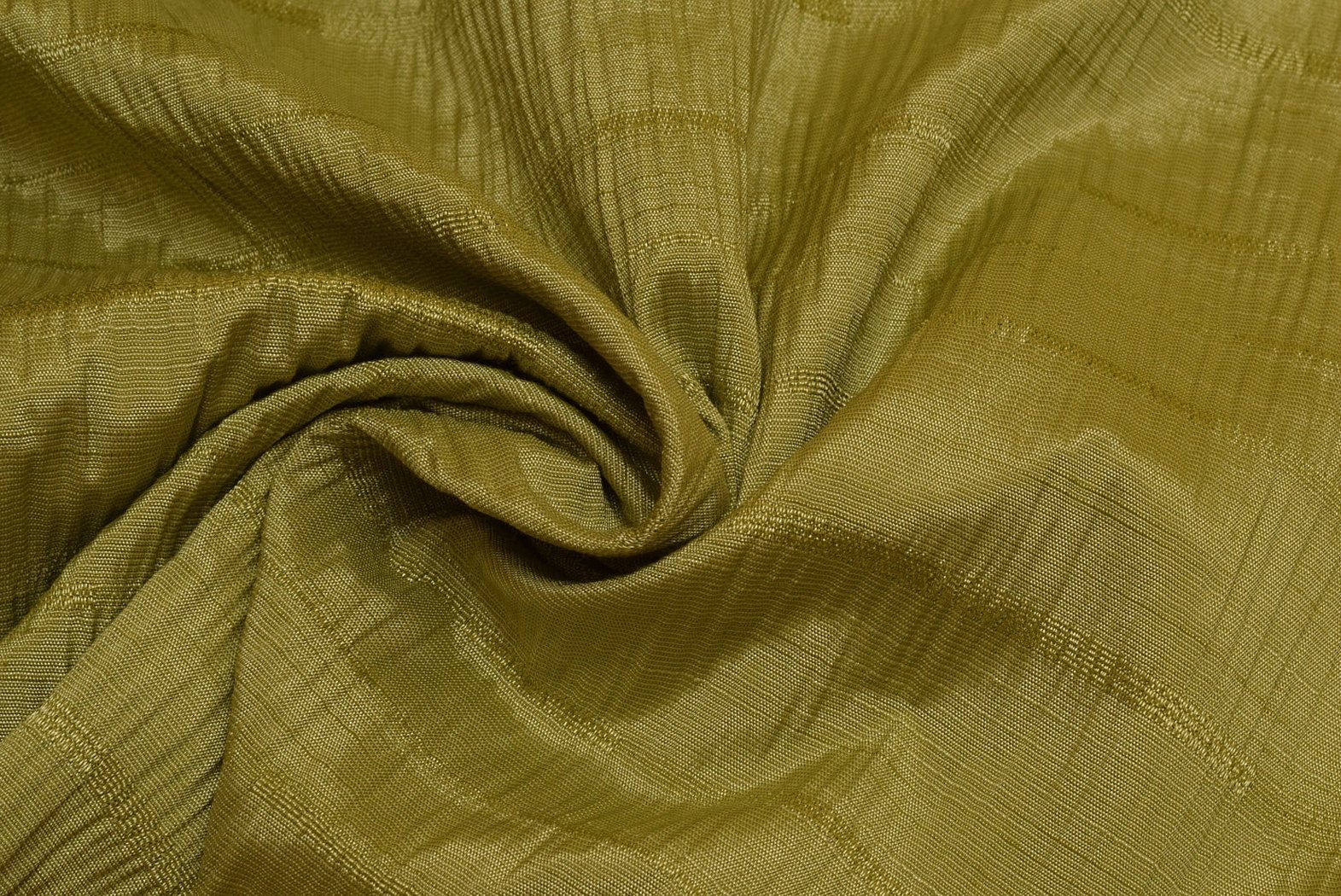 - Обработка готового полотна. Тонкую ткань из вискозы или полиэстера собирают в хаотичные продольные складки разной формы и помещают под горячий пресс. Синтетические нити при этом меняют свои свойства (скручиваются, сжимаются), а натуральные остаются прежними.