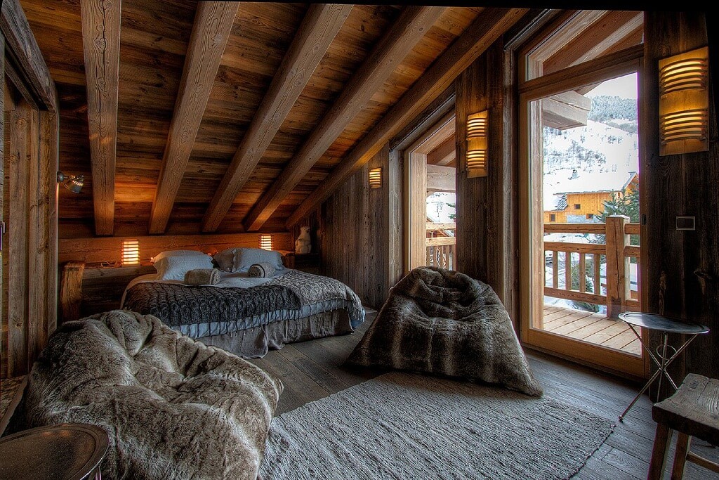 Общие черты интерьеров шале для спален: