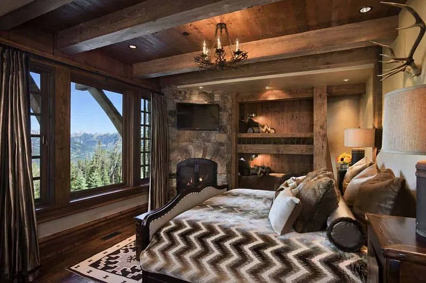 Классический стиль шале для спальни в загородном домике в горахИсточник oir.mobi