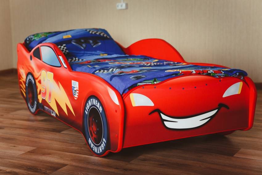 Хорошим решением станет трансформирующаяся мебель, например диван, который раскладывается, или кровать с ящиками для хранения. Особую привлекательность для детей представляет кровать в виде машины. Особенно такая модель понравится мальчикам. Данные изделия также могут иметь ящики для хранения и другие аксессуары: светящиеся фары или подсветку по периметру. Дизайн данных кроватей может быть разным. Сегодня популярны персонажи мультфильма «Тачки» (кроватка «молния Маквин») и кровать-машина «Мерседес». Также можно приобрести специальный комплект детского постельного белья с тематикой «Тачки».